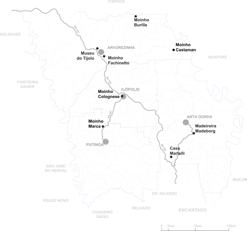 Inicialmente o roteiro previa a exaltação da cultura dos moinhos da região Alto Taquari, onde se poderia visitar diferentes moinhos de grãos, como o Moinho Dallé e o Moinho Vicenzi em Anta Gorda, o Moinho Castaman e o Moinho Fachinetto em Arvorezinha e o Moinho Marca em Putinga.